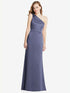 【NEW】【STYLE: LB028】shirred ワンショルダー サテン トランペット ドレス - マディ【COLOR: French Blue】【SIZE: 00-30W】