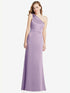 【NEW】【STYLE: LB028】shirred ワンショルダー サテン トランペット ドレス - マディ【COLOR: Pale Purple】【SIZE: 00-30W】