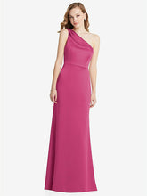 【NEW】【STYLE: LB028】shirred ワンショルダー サテン トランペット ドレス - マディ【COLOR: Tea Rose】【SIZE: 00-30W】