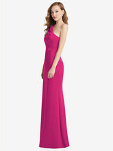 【NEW】【STYLE: LB028】shirred ワンショルダー サテン トランペット ドレス - マディ【COLOR: Think Pink】【SIZE: 00-30W】