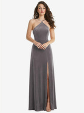【NEW】【STYLE: LB034】高 首 ホルター オープンバック ベルベット ドレス - アリックス【COLOR: Caviar Gray】【SIZE: 00-30W】