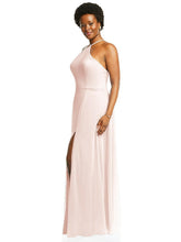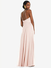 このラックスシフォンガウンに注意を払うダイヤモンドホルターネックラインで魅力を抱きしめます。自然なウエストを備えたフォーマルなデザインであるこのマキシドレスは、太もものスリットと形状を完全に定義する自然なウエストを備えた改変されたサークルスカートを備えた流れるシルエットに放火を作成します。