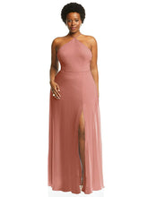 このラックスシフォンガウンに注意を払うダイヤモンドホルターネックラインで魅力を抱きしめます。自然なウエストを備えたフォーマルなデザインであるこのマキシドレスは、太もものスリットと形状を完全に定義する自然なウエストを備えた改変されたサークルスカートを備えた流れるシルエットに放火を作成します。