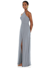 このラックスシフォンガウンに注意を払うダイヤモンドホルターネックラインで魅力を抱きしめます。自然なウエストを備えたフォーマルなデザインであるこのマキシドレスは、太もものスリットと形状を完全に定義する自然なウエストを備えた改変されたサークルスカートを備えた流れるシルエットに放火を作成します。