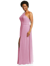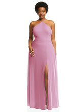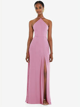 このラックスシフォンガウンに注意を払うダイヤモンドホルターネックラインで魅力を抱きしめます。自然なウエストを備えたフォーマルなデザインであるこのマキシドレスは、太もものスリットと形状を完全に定義する自然なウエストを備えた改変されたサークルスカートを備えた流れるシルエットに放火を作成します。