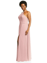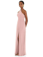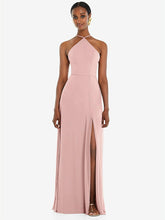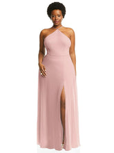 このラックスシフォンガウンに注意を払うダイヤモンドホルターネックラインで魅力を抱きしめます。自然なウエストを備えたフォーマルなデザインであるこのマキシドレスは、太もものスリットと形状を完全に定義する自然なウエストを備えた改変されたサークルスカートを備えた流れるシルエットに放火を作成します。