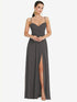 【NEW】【STYLE: LB036】調整可能 ストラップ ラップ ボディス マキシ ドレス 前面 スリット 【COLOR: Caviar Gray】【SIZE: 00-30W】