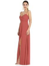 【NEW】【STYLE: LB036】調整可能 ストラップ ラップ ボディス マキシ ドレス 前面 スリット 【COLOR: Coral Pink】【SIZE: 00-30W】