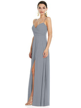 【NEW】【STYLE: LB036】調整可能 ストラップ ラップ ボディス マキシ ドレス 前面 スリット 【COLOR: Platinum】【SIZE: 00-30W】