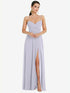 【NEW】【STYLE: LB036】調整可能 ストラップ ラップ ボディス マキシ ドレス 前面 スリット 【COLOR: Silver Dove】【SIZE: 00-30W】