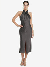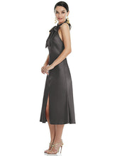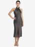 【NEW】【STYLE: LB038】スカーフ ネクタイ スタンド 襟 MIDI バイアス ドレス 前面 スリット【COLOR: Caviar Gray】【SIZE: 00-30W】