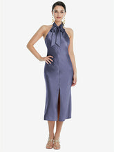 【NEW】【STYLE: LB038】スカーフ ネクタイ スタンド 襟 MIDI バイアス ドレス 前面 スリット【COLOR: French Blue】【SIZE: 00-30W】