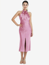 【NEW】【STYLE: LB038】スカーフ ネクタイ スタンド 襟 MIDI バイアス ドレス 前面 スリット【COLOR: Powder Pink】【SIZE: 00-30W】