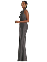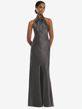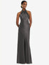 【NEW】【STYLE: LB039】スカーフ ネクタイ スタンド 襟 マキシ ドレス 前面 スリット【COLOR: Caviar Gray】【SIZE: 00-30W】