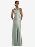 【NEW】【STYLE: LB039】スカーフ ネクタイ スタンド 襟 マキシ ドレス 前面 スリット【COLOR: Willow Green】【SIZE: 00-30W】
