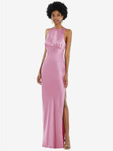 このLux Charmeuseの袖なしのガウンのセクシーなシルエットで控えめな魅力を受け入れます。このフロアレンフスのガウンは、シックな定義を作成する宝石のネックラインとシャーリングボディスで肩を披露します。スライドスリットを備えたバイアススカートは、夜の最後の歌まで踊るための十分な動きを提供するなめらかな見た目を維持します。
