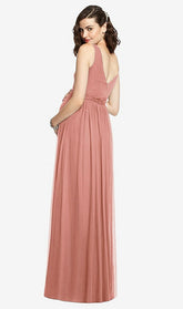 ノッチの詳細なネックラインと素敵なプリーツのボディスは、このフルレングスのノースリーブマタニティブライドメイドドレスに甘いパナッシュを追加します。 Lux Chiffon Fabricは、Shirred SkirtにAckless Graceの感覚をもたらします。