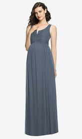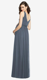 ノッチの詳細なネックラインと素敵なプリーツのボディスは、このフルレングスのノースリーブマタニティブライドメイドドレスに甘いパナッシュを追加します。 Lux Chiffon Fabricは、Shirred SkirtにAckless Graceの感覚をもたらします。