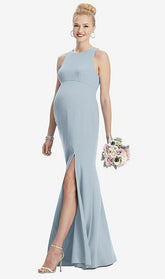 【NEW】【STYLE: M441】ノースリーブ ホルター マタニティ ドレス 前面 スリット【COLOR: Mist】【SIZE: 00-30W】