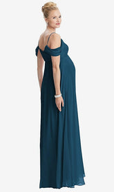 【NEW】【STYLE: M442】ドレープ コールドショルダー シフォン マタニティ ドレス【COLOR: Atlantic Blue】【SIZE: 00-30W】