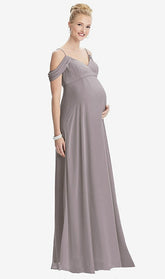 【NEW】【STYLE: M442】ドレープ コールドショルダー シフォン マタニティ ドレス【COLOR: Cashmere Gray】【SIZE: 00-30W】