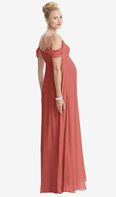 【NEW】【STYLE: M442】ドレープ コールドショルダー シフォン マタニティ ドレス【COLOR: Coral Pink】【SIZE: 00-30W】