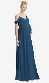 【NEW】【STYLE: M442】ドレープ コールドショルダー シフォン マタニティ ドレス【COLOR: Dusk Blue】【SIZE: 00-30W】