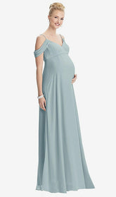 【NEW】【STYLE: M442】ドレープ コールドショルダー シフォン マタニティ ドレス【COLOR: Morning Sky】【SIZE: 00-30W】