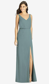 ブルーソンボディスとお世辞のVネックラインで自然な曲線をスポットライトしてください。サイドフロントスリットがふざけて脚のヒントを見せていますが、ルクスシフォンファブリックは、このフルレングスのソフトトランペットドレスにシンプルな優雅さの空気を与えます。