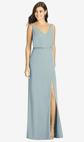 ブルーソンボディスとお世辞のVネックラインで自然な曲線をスポットライトしてください。サイドフロントスリットがふざけて脚のヒントを見せていますが、ルクスシフォンファブリックは、このフルレングスのソフトトランペットドレスにシンプルな優雅さの空気を与えます。