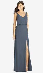 ブルーソンボディスとお世辞のVネックラインで自然な曲線をスポットライトしてください。サイドフロントスリットがふざけて脚のヒントを見せていますが、ルクスシフォンファブリックは、このフルレングスのソフトトランペットドレスにシンプルな優雅さの空気を与えます。