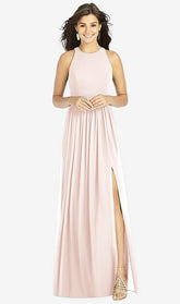 【NEW】【STYLE: TH008】Shirred スカート 宝石 首 ホルター ドレス 前面 スリット【COLOR: Blush】【SIZE: 00-30W】
