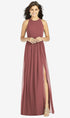 【NEW】【STYLE: TH008】Shirred スカート 宝石 首 ホルター ドレス 前面 スリット【COLOR: English Rose】【SIZE: 00-30W】