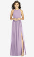 【NEW】【STYLE: TH008】Shirred スカート 宝石 首 ホルター ドレス 前面 スリット【COLOR: Pale Purple】【SIZE: 00-30W】