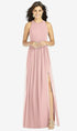【NEW】【STYLE: TH008】Shirred スカート 宝石 首 ホルター ドレス 前面 スリット【COLOR: Rose - PANTONE Rose Quartz】【SIZE: 00-30W】
