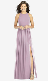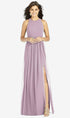 【NEW】【STYLE: TH008】Shirred スカート 宝石 首 ホルター ドレス 前面 スリット【COLOR: Suede Rose】【SIZE: 00-30W】