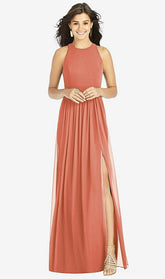 【NEW】【STYLE: TH008】Shirred スカート 宝石 首 ホルター ドレス 前面 スリット【COLOR: Terracotta Copper】【SIZE: 00-30W】