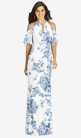 【NEW】【STYLE: TH010】フリル コールドショルダー 人魚 マキシ ドレス【COLOR: Cottage Rose Dusk Blue】【SIZE: 00-30W】