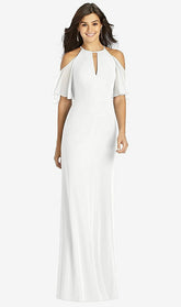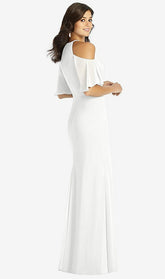 【NEW】【STYLE: TH010】フリル コールドショルダー 人魚 マキシ ドレス【COLOR: White】【SIZE: 00-30W】