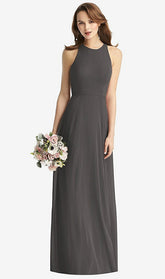 【NEW】【STYLE: TH011】ノースリーブ ホルター シフォン マキシ ドレス【COLOR: Caviar Gray】【SIZE: 00-30W】