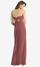 スキニースパゲッティストラップとオープンタイバックを備えたフルレングスラックスシフォンマキシドレス。サイドフロントにスリットが付いた改造されたトランペットスカート。フィット&ampを読んでください。注文前のサイジングのヒント。