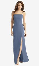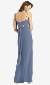 【NEW】【STYLE: TH013】ネクタイバック カットアウト トランペット ガウン 前面 スリット【COLOR: Larkspur Blue】【SIZE: 00-30W】