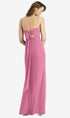 スキニースパゲッティストラップとオープンタイバックを備えたフルレングスラックスシフォンマキシドレス。サイドフロントにスリットが付いた改造されたトランペットスカート。フィット&ampを読んでください。注文前のサイジングのヒント。