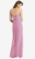スキニースパゲッティストラップとオープンタイバックを備えたフルレングスラックスシフォンマキシドレス。サイドフロントにスリットが付いた改造されたトランペットスカート。フィット&ampを読んでください。注文前のサイジングのヒント。
