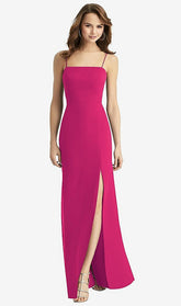 スキニースパゲッティストラップとオープンタイバックを備えたフルレングスラックスシフォンマキシドレス。サイドフロントにスリットが付いた改造されたトランペットスカート。フィット&ampを読んでください。注文前のサイジングのヒント。