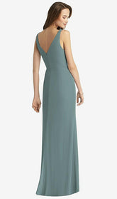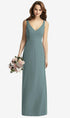 形のVネックライン、低Vバック、修正されたトランペットスカートを備えた長い袖なしのラックスシフォンマキシドレス。フィット&ampを読んでください。注文前のサイジングのヒント。