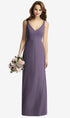 形のVネックライン、低Vバック、修正されたトランペットスカートを備えた長い袖なしのラックスシフォンマキシドレス。フィット&ampを読んでください。注文前のサイジングのヒント。
