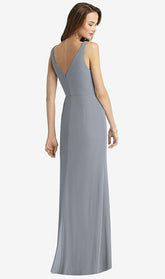 形のVネックライン、低Vバック、修正されたトランペットスカートを備えた長い袖なしのラックスシフォンマキシドレス。フィット&ampを読んでください。注文前のサイジングのヒント。