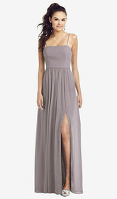 【NEW】【STYLE: TH017】スリム スパゲッティ ストラップ シフォン ドレス 前面 スリット 【COLOR: Cashmere Gray】【SIZE: 00-30W】