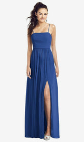 【NEW】【STYLE: TH017】スリム スパゲッティ ストラップ シフォン ドレス 前面 スリット 【COLOR: Classic Blue】【SIZE: 00-30W】